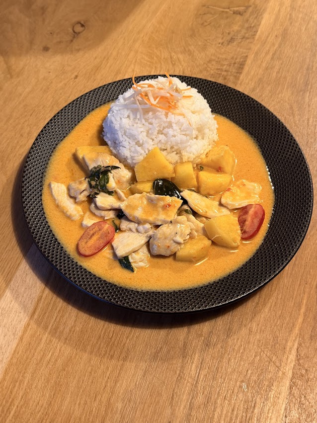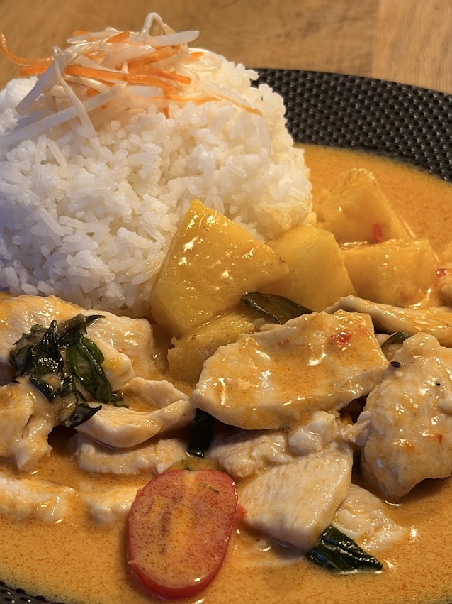 Curry rouge crémeux, poulet tendre, ananas juteux
